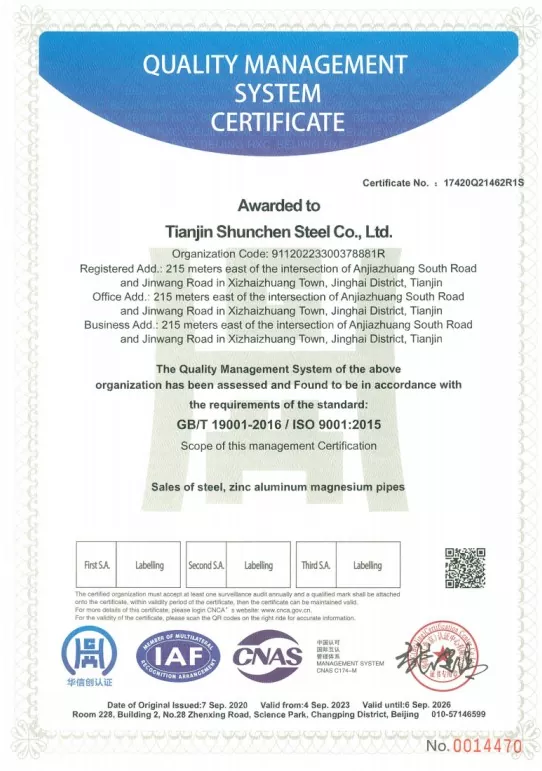 Tianjin Shunchen Industrial Company har samlet over tre tiår med produksjonserfaring i stålindustrien. Selskapet har ISO 9000, 3A-systemsertifiseringer, samt EUs CE-sertifisering, og har etablert et komplett industrikjedeoppsett fra galvaniseringsprosessering til salg og distribusjon. Gjennom strenge 12-trinns prosessflyter og en tre-lags omfattende inspeksjonsmekanisme, har selskapet oppnådd en rekord med null årlige kvalitets- og sikkerhetsulykker og null ordre standard i 12 påfølgende år. Shunchen Industrial har et helårsbeholdning av galvanisert stål på over 20 000 tonn, og danner et storskala supermarked i galvanisert stål som integrerer lager og distribusjon. Lageret dekker et areal på 10 000 kvadratmeter, og gir solid støtte til den integrerte produksjons- og salgstjenesten.