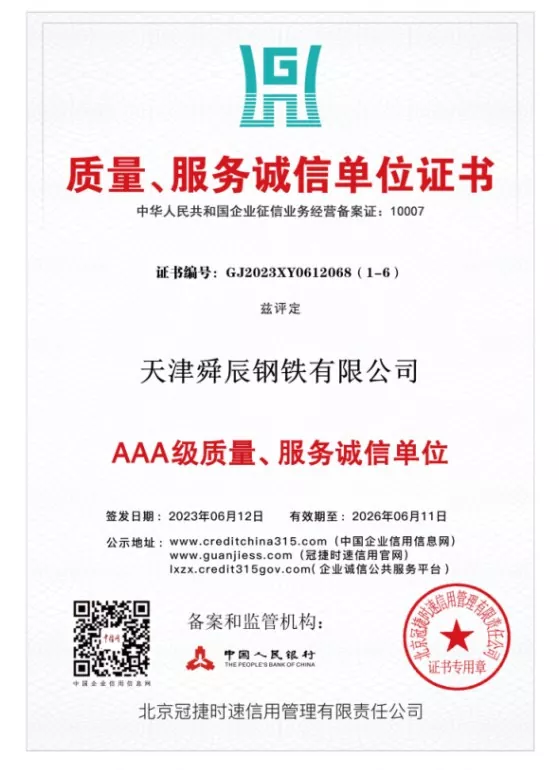 Tianjin Shunchen Industrial Company har vært dedikert til produksjon av konstruksjonsstål i over tre tiår, og gir kundene profesjonell støtte til å produsere tilpassede U-kanalstål. Selskapet har flere sertifiseringer, inkludert internasjonale ISO 9000, 3A-systemer og EUs CE-merke. Gjennom 12 strenge prosessflyter og tre nivåer av omfattende inspeksjon og kontroll, har den oppnådd en stabil rekord med null årlige kvalitets- og sikkerhetsulykker og nullordre standard i opptil 12 år.